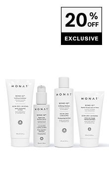 Smarter care. Stronger hair. MONAT BOND IQ™ offers total hair reconstruction from damage caused by chemical treatments, heat styling, environmental stressors, and combing and brushing. Through advanced biotechnology and nature’s powerful ingredients, including lupin protein, peptides, baobab extract, and our exclusive REJUVENIQE®, the 4-step system targets the root cause of damage, strengthening hair from within.